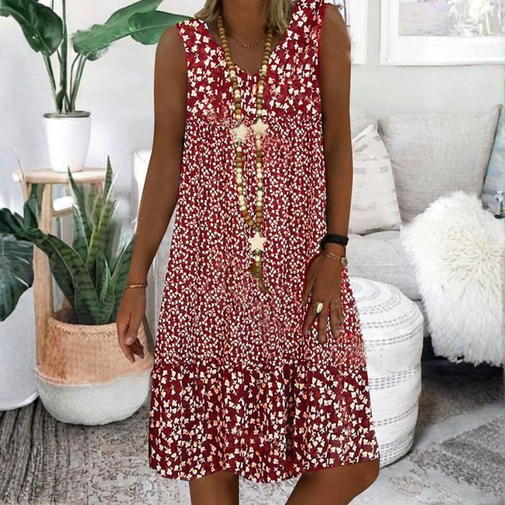 • Details: Sleeveless design, V-neckline, floral print, and loose A-line cut.