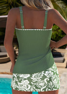 Stay effortlessly chic by the pool or shore with the Maisy Tankini Set. Its ribbed sage-green top pairs beautifully with a paisley-print skirted bottom, creating a look that’s both feminine and easy to wear. Designed for comfort and confidence, it’s the set you’ll love all summer long.